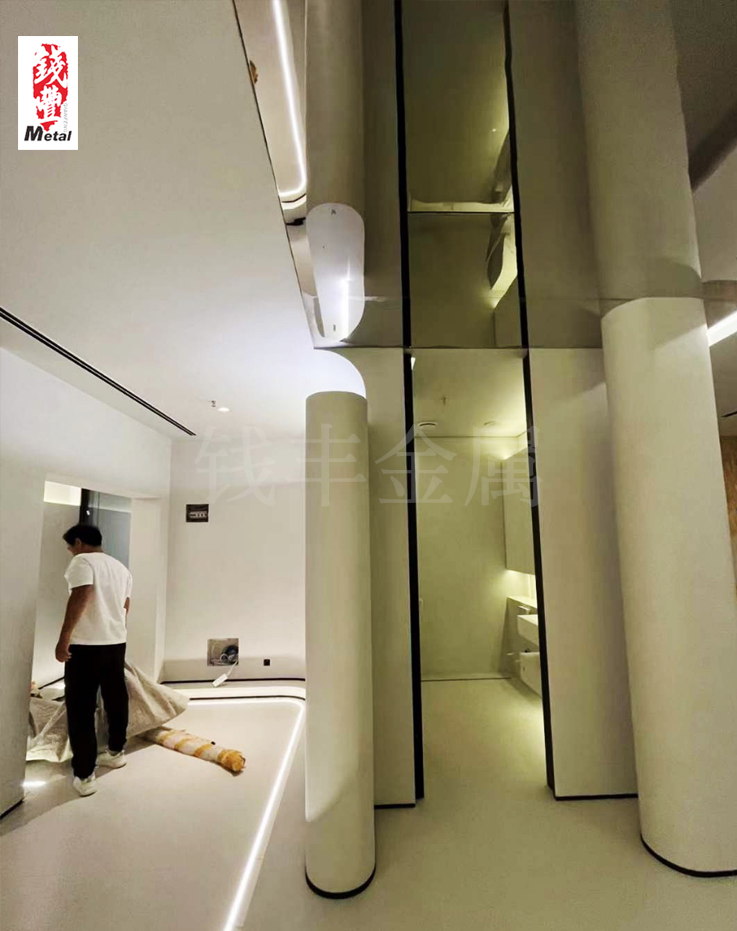 四、環保節能,可持續發展不銹鋼鏡面天花吊頂采用環保材料制作,符合國家環保標準,對人體無害。而且,不銹鋼材質具有良好的耐久性和穩定性,使用壽命長,不易變形和老化。同時,不銹鋼材料可以回收再利用,符合可持續發展的理念。